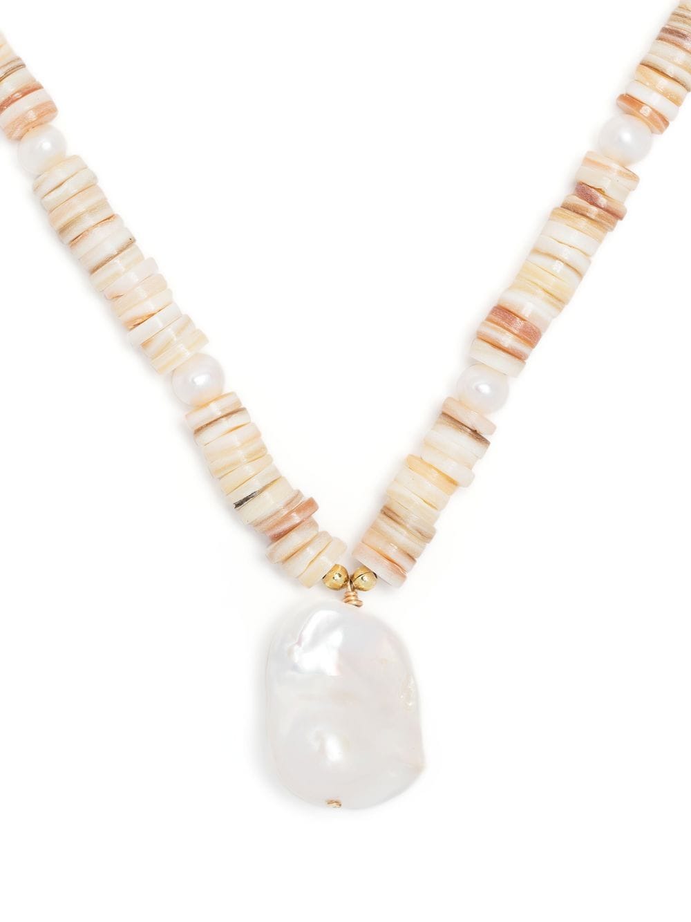 A Sinner in PearlsHalsketting met hangerBeige, wit, steen, parel decoratie, parel hanger en gespsluiting.