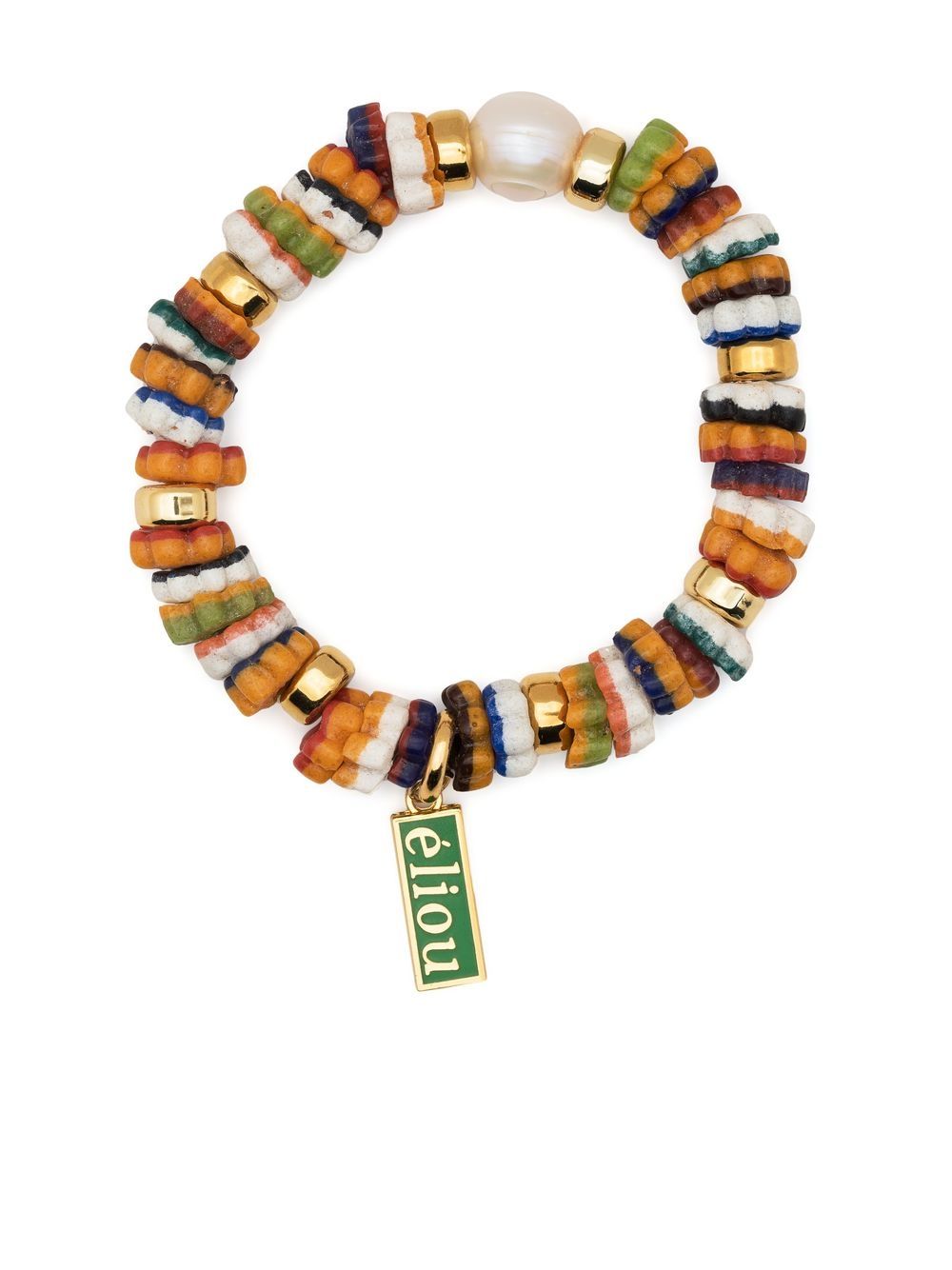 Nieuw seizoenéliouArmband met logobedelVeelkleurig, zoetwaterparel, kralendetail, bloemenpatroon, goudkleurig materiaal en logo plakkaat.Land van herkomst: Verenigde Staten