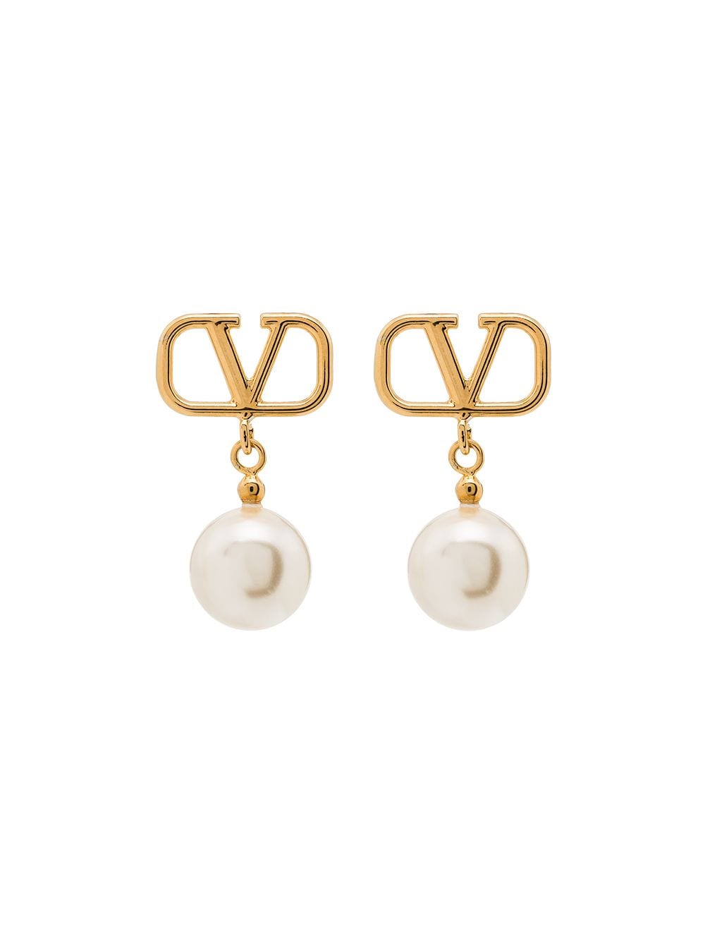 RunwayValentino GaravaniOorbellen met parelParel hanger, kenmerkend VLOGO en oorsteker. Materiaal: messing. Twee is beter dan één. Deze oorbellen worden worden per paar geleverd.Land van herkomst: Italië